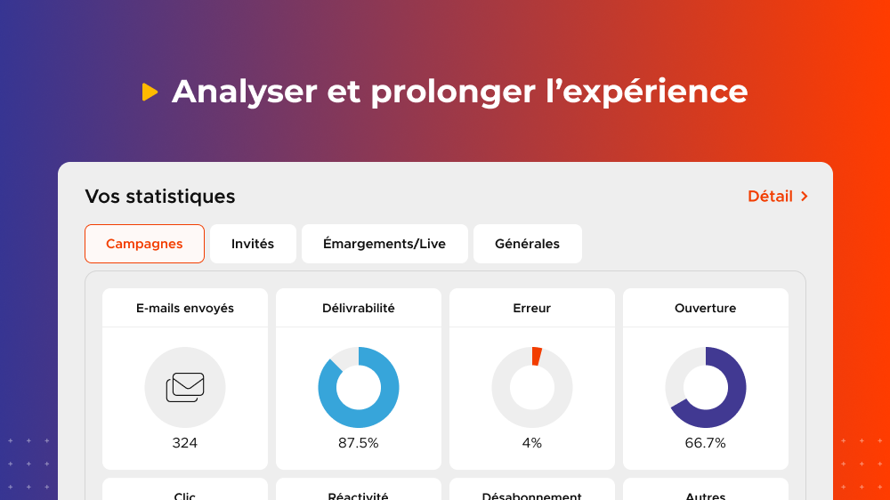 La plateforme permet également d’accéder à des statistiques détaillées : taux de participation, engagement des invités ou performances des campagnes d’invitations. Ces données sont précieuses pour analyser les retombées de l’événement et améliorer les éditions futures.